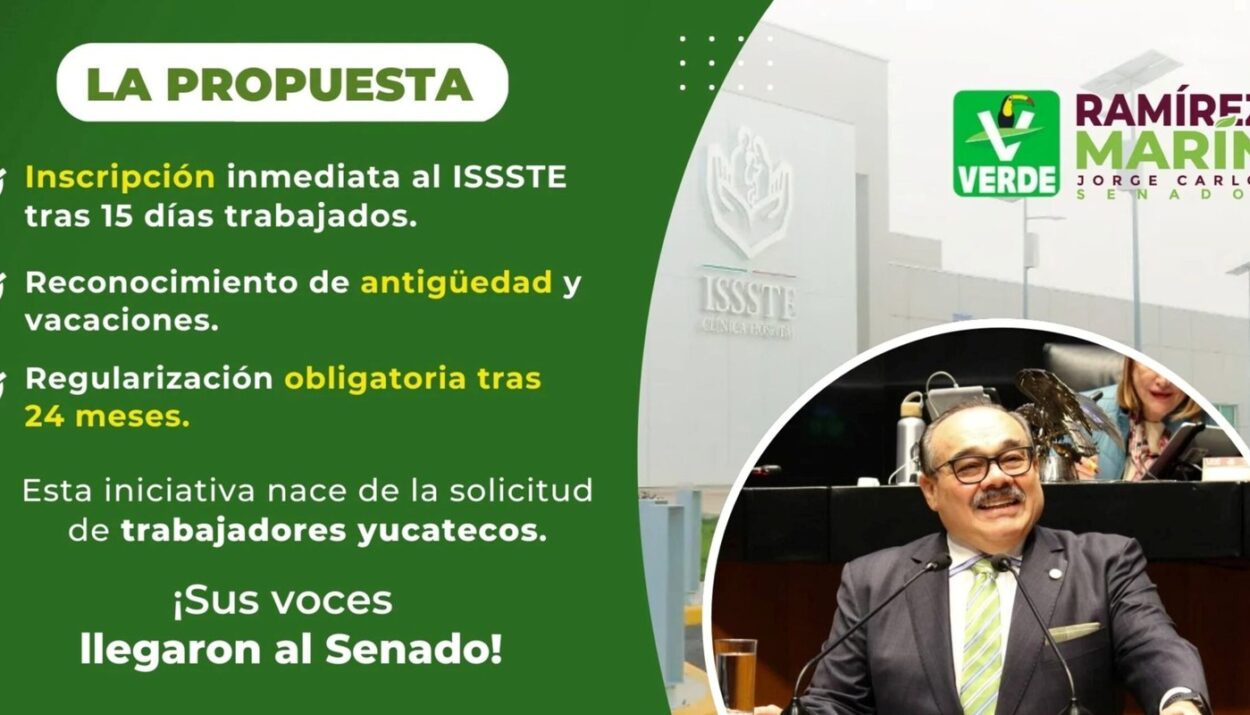 El senador por Yucatán, Jorge Carlos Ramírez Marín, presentó una iniciativa de reforma a la ley con el objetivo de garantizar derechos laborales básicos a las y los trabajadores suplentes del ISSSTE, quienes durante años han laborado en condiciones de incertidumbre.